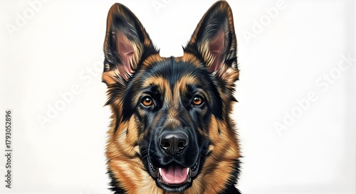 Oil Painting of a German Shepherd Headshot on White Background Realistic Fine Art Dog Portrait