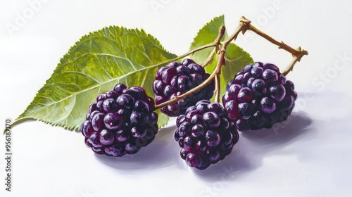 Oil painting of mulberry fruit on a white background showcasing the fruit s details and characteristics in an isolated setting