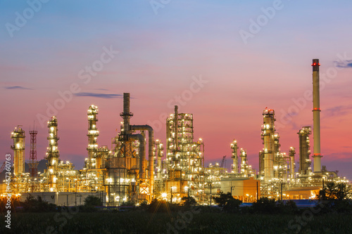 Oil​ refinery​ and​ plant and tower column of Petrochemistry industry in oil​ and​ gas​ ​industrial with​ cloud​ red sky