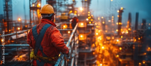 Oil Rig Worker at Night