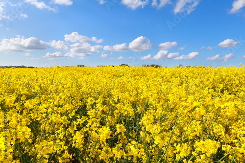 oilseed flower field over blue sky
