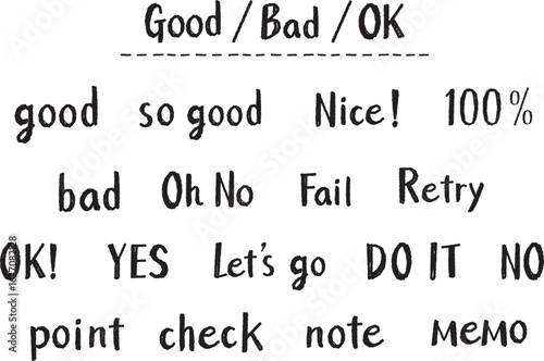 graphic, character, illustration, white background, material, vector, set, design, decoration, handwriting, english, casual, phrase, remark, message, ok, black, monochrome, black, black, monotone, word, text