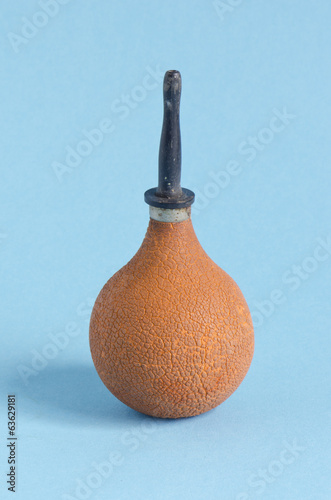 object, tool, health, colours, brown, blue, black, bulb, blowing, air, enema, doctor, old, ancient, antique, retro, nurse, pharmacy, rubber, used, pump
