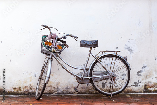 Old bicycle parked against the wall