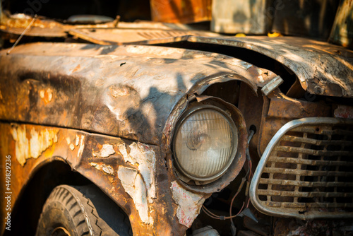 car, rust-eaten, old, vintage, vehicle, automobile, rust, metal, auto, retro, abandoned, antique, transport, rusted, classic, broken, aged, wreck, dirty, iron, road, obsolete, light, part, forgotten, disused, transportation, closeup, style, front, blue, automotive, weathered, wheel, corrosion, headlamp, historic, rotten, garbage, corroded, bumper, nostalgia, detail, damaged, old car, scrap