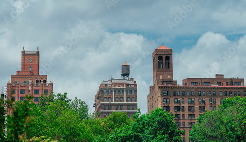 old building in New York city park tress