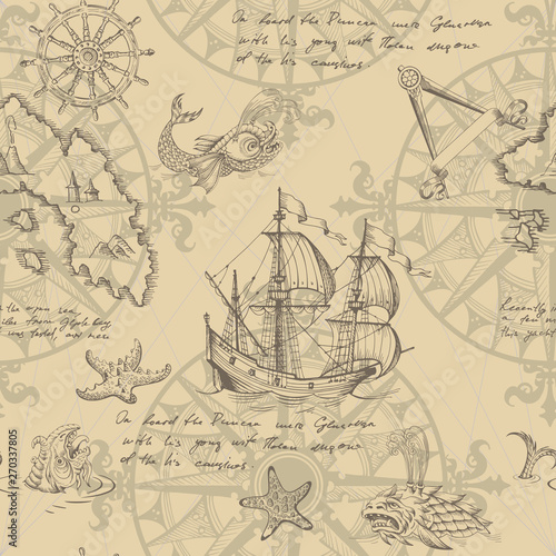 ship, vector, vintage, sailboat, boat, old, illustration, sea, drawing, nautical, vignetting, sail, sailing, columbus, design, ancient, marin, history, wave, wind, vessel, antique, art, ocean, water, transport, retro, mast, drawn, historical, frigate, background, caravel, travel, geographical, map, squid, anchor, octopus, pirate, treasure, windrose, starfish, adventure, wallpaper, island, note, isle