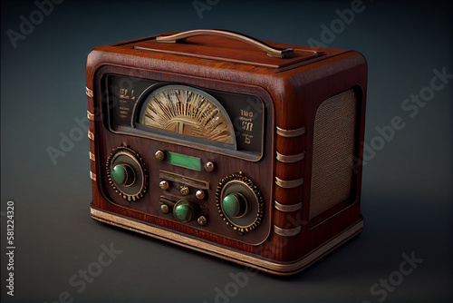 radio, old, antique, technology, wood, material, broadcasting, tuner, equipment, obsolete, frequency, revival, speaker, knob, electrical equipment, chrome, closeup, electricity, electronics industry, analog, stereo, elegance, no people, boom box, communication, studio shot, front view, fashion, history, push-button, transistor, listening, bakelite, simplicity, turntable, metal, modern, box, container, generative, ai