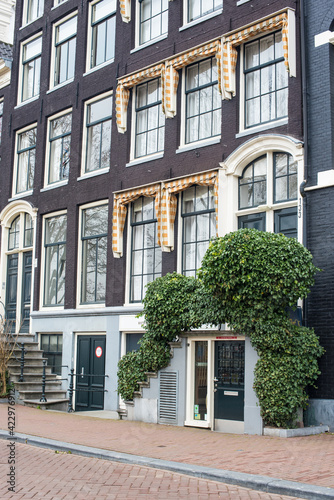 old houses of Amsterdam with flower pots