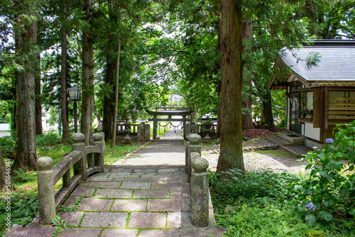 Old Japanese wooden torii gate deep in the mountains