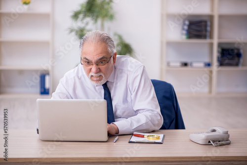 Old male boss working at workplace