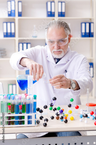 Old male chemist working in the lab
