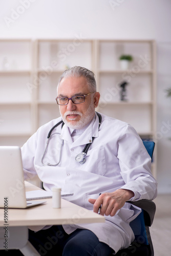 Old male doctor in telemedicine concept