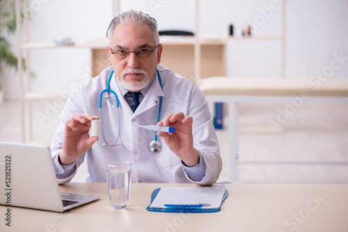 old, experienced, doctor, drug, pill, tablet, capsule, vitamin, medicine, medicine, medicare, medication, antibiotic, painkiller, bottle, container, thermometer, temperature, measuring, measurement, measure, presenting, showing, demonstrating, care, check-up, clinic, health, health care, hospital, medicals, medicine, physician, practitioner, recovery, treatment, diagnosis, diagnostic, disease, examining, check-up, insurance, healer, consultation, practice, prescription, man, discussing, explaining
