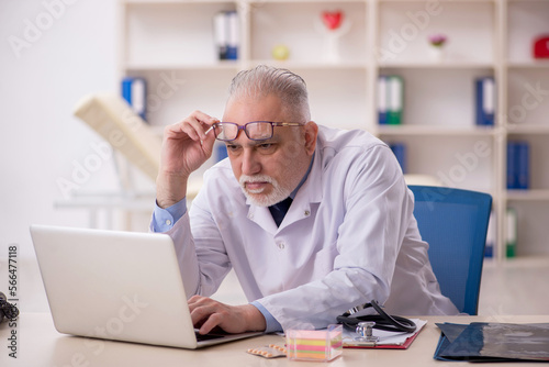 Old male doctor working in the clinic