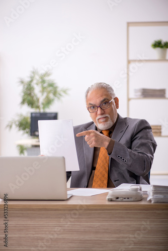 Old male employee working at workplace