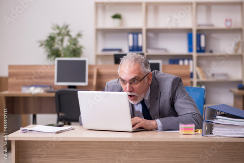 Old male employee working in the office