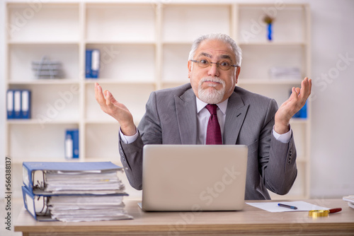 Old male employee working in the office