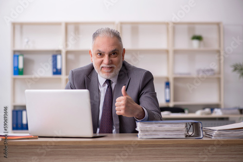 Old male employee working in the office