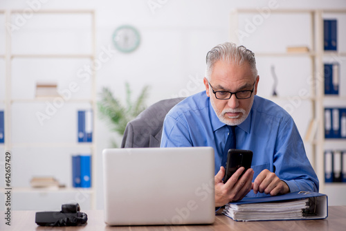 Old male employee working in the office