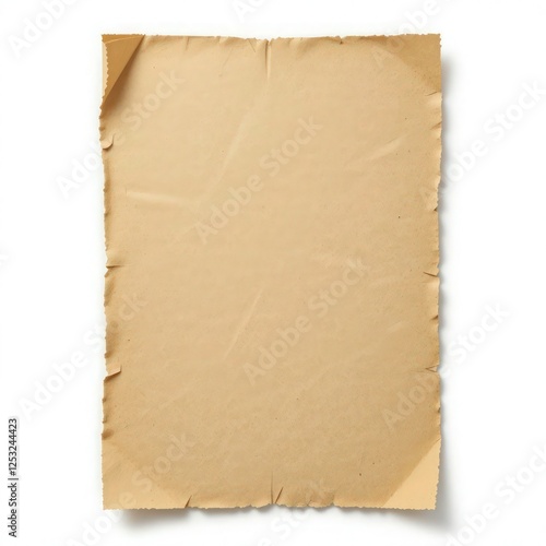 Old parchment, aged paper texture, torn edges, vintage document, blank scroll, sepia toned, weathered background, antique appearance, rough surface, historical manuscript, empty template, frayed borde