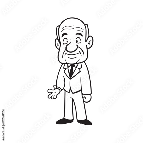 Old person in formal suit black and white vector illustration portrait elegant classic digital artwork