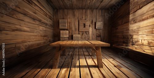 old room with floor, old wooden interior, old wooden room, wood table and wall wood,
