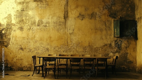 room, old, wall, texture, chair, table, wooden, interior, antique, vintage, grunge, rustic, aged, weathered, decay, dilapidated, abandoned, forgotten, history, past, mystery, shadow, light, dark, gloomy, atmosphere, mood, space, empty, silence, solitude, place, setting, background, design, architecture, building, structure, desolate, forlorn, peeling, in plaster, cracked, damaged, worn, dust, dirty, window, door