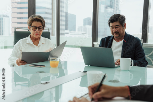 asian, couple, senior, elder, woman, man, laptop, meeting, room, table, appointment, architect, architecture, executive, brainstorm, building, business, businessman, businessperson, businesswoman, ceo, co-worker, colleague, company, conference, construction, corporate, discussion, engineer, entrepreneur, estate, group, computer, mature, occupation, office, old, partner, professional, project, real, tablet, team, teamwork, together, men at work, working, eyeglass, 2