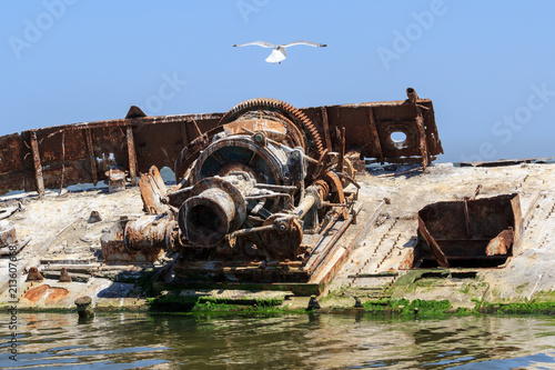 ship, boat, sea, shipwreck, wreck, old, fishing, water, beach, abandoned, ocean, rust-eaten, rust, broken, sailing, sky, vessel, nautical, industrial, coast, transportation, industry