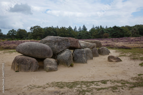 Old stone grave like a big dolmen in Drenthe Holland