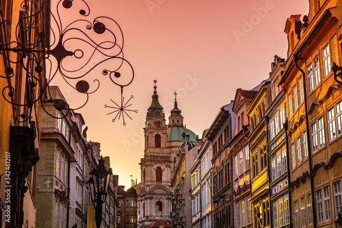 old streets of Prague near Charles bridge at sunset