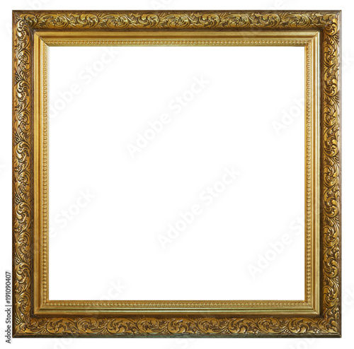 Old vintage golden frame on a white background, isolated