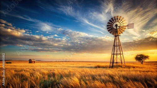 Old windmill standing tall in a rustic field, windmill, field, vintage, rural, countryside, agriculture, farm