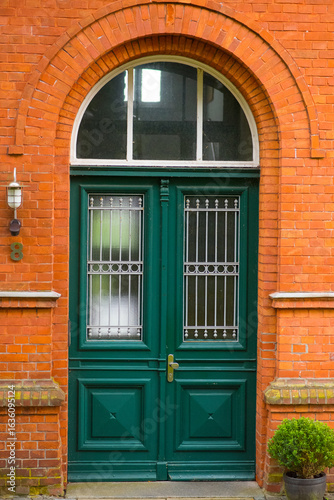 german, traditional, doorway, door, entrance, rustic, redbrick, architecture, historic, vintage, old, green, arched, window, ironwork, lantern, transom, stained-glass, charme, european, german, building, facades, historic building, travel, cultural, residential, house, detailed, design, historical, antique, craftsmanship, heritage, urban, village, stone, wall, portal, decor