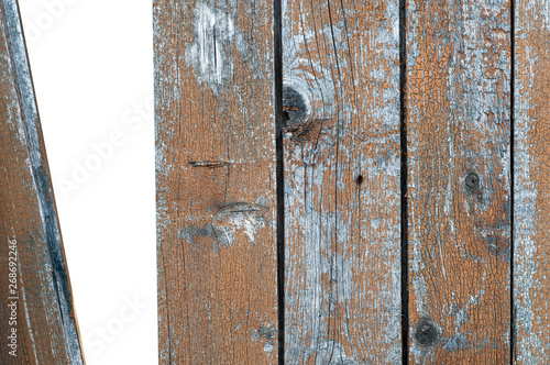 Old wooden fence with a hole. old wood background texture. Copy space