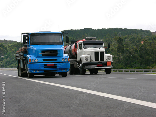 transportation, tanker, truck, freight, blue, delivery, diesel, engine, lorry, new, old, power, road, white, grade, ramp