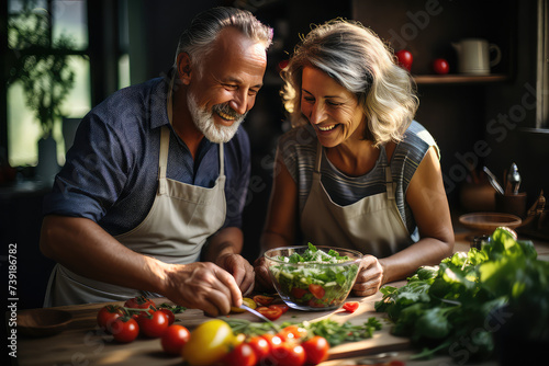 preparation, two people, adult, salad, affectionate, enjoyment, horizontal, indoor, lifestyle, man, retirement, togetherness, woman, grey hair, making, vegetable, healthy eating, healthy lifestyle, domestic life, adults only, bonding, wife, husband, lettuce, senior, table, kitchen, tomatoes, vegetarian, vegan, couple, cooking, food, family, home, vegetable, people, together
