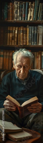 sitting, chair, reading, book, goggles, leisure, relaxation, wisdom, peaceful, silence, cosy, comfort, life events, serene, intellectual, concentration, enjoying, content, solitude, contemplation, aged, knowledgeable, mature, calm, thoughtful, scholarly, reflective, engrossed, absorbed, retirement, learned, passionate, literature, cognition, ageing