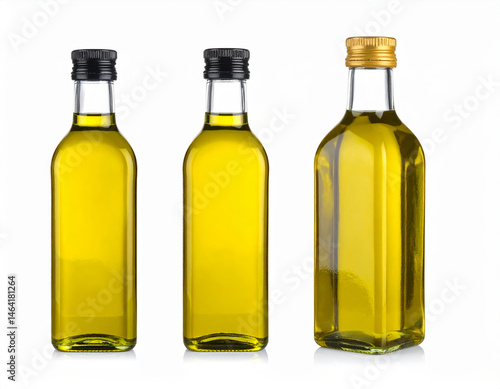 Olive oil bottles standing on white background