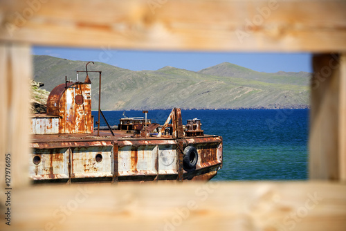 sea, boat, water, beach, island, baikal, bay, blue, cape, clear, cliff, cloud, coast, coniferous, evening, grass, green, horizon, impression, july, june, lake, landscape, larch, mountain, nature, distant, remote