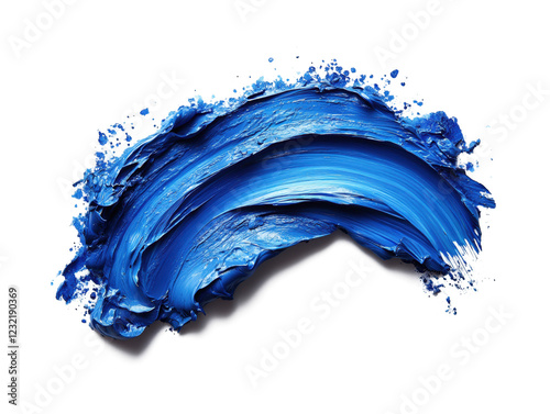 one blue brush strokes isolated on a white background, one curve shape, with an oil paint texture, in a flat lay composition
