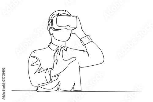 One continuous line drawing of virtual game concept. Doodle vector illustration in simple linear style.