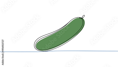 One continuous line illustration of an Cucumber vegetable, isolated on white background.