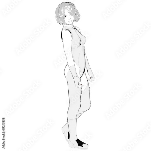 girl, teenage, anime, black, clothes, comic, drawing, coiffure, manga, outfit, she, vignetting, style, suit, white
