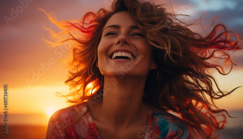 woman, smiling, adult, happiness, cheerful, lifestyle, carefree, summer, 1, woman, missy, sunset, beauty, long hair, wind, enjoyment, joy, brown hair, nature, sunlight, freedom, fun, toothy smile, only, young, relaxation, avocation, portrait, sun, looking, motion, casual clothes, adults only, laughing, vacation, real people, candid, part of