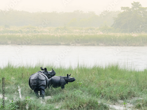 rhino, nepal, animal, wildlife, baby animal, dawn, endangered, grass, green, jungle, mother, nature, no people, no one, nobody, outdoors, park, people, reserve, rhino, river, safari, twilight, wild