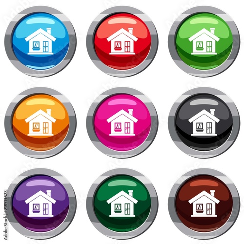 One-storey house with a chimney set icon isolated on white. 9 icon collection vector illustration
