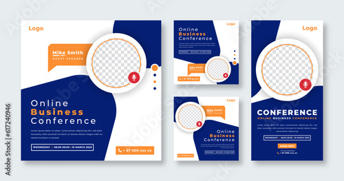 Online Business Conference Social Media Post for Online Marketing Promotion Banner, Story and Web Internet Ads Flyer