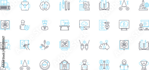 Online education linear icons set. E-learning, Webinar , Distance learning, MOOCs, Virtual classrooms, Edtech, Online classes line vector and concept signs. Digital education,Web-based Generative AI